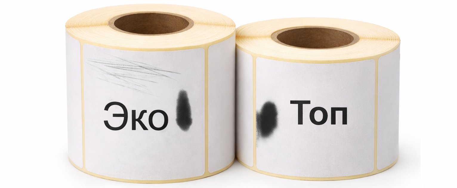 Термоэтикетки ТОП имеют специальное защитное покрытие, которое защищает термочувствительный слой от влаги, света и внешних воздействий. Благодаря этому такие этикетки лучше сохраняют напечатанную информацию и подходят для более сложных условий эксплуатации. Их часто используют для маркировки товаров на маркетплейсах, в холодильных камерах, а также в логистике, где требуется более высокая стойкость печати.