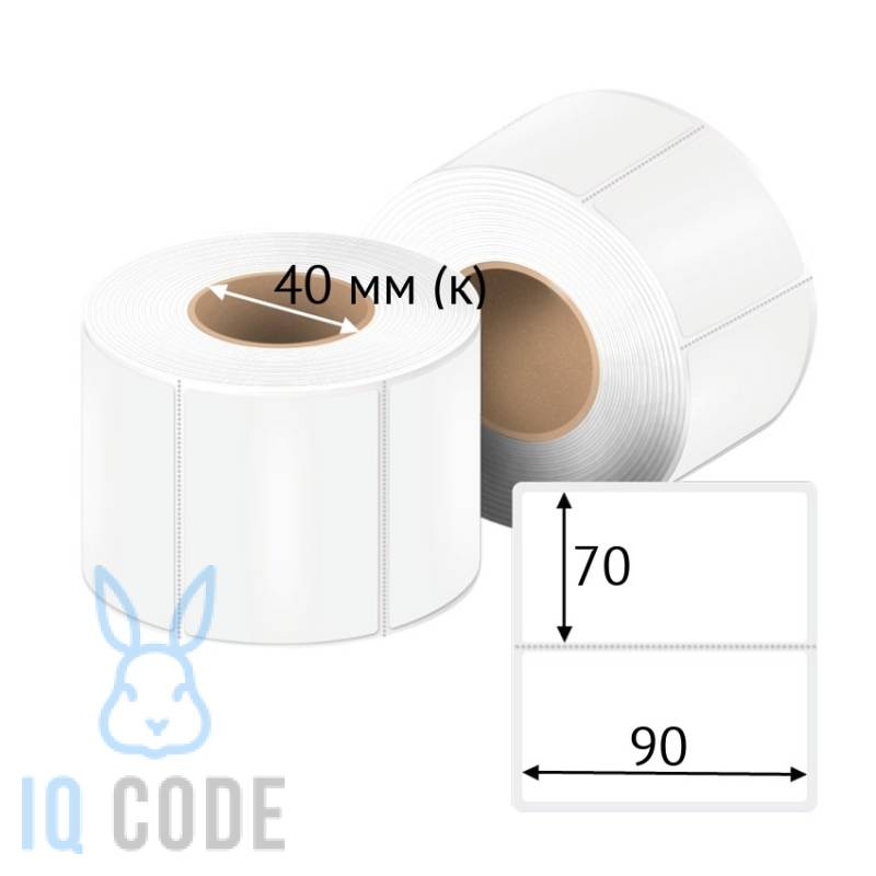 Полипропиленовая этикетка 90х70 белая, втулка 40 мм (к) (рядов 1 по 500 шт) + Перфорация 2 мм рез 1 мм пробел IQ code