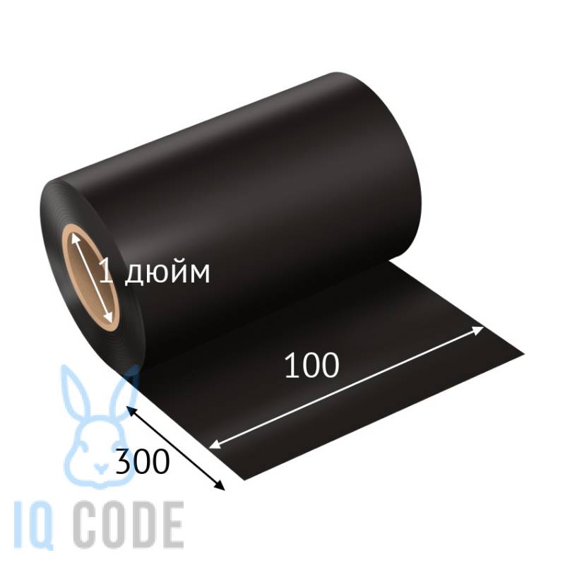 Красящая лента (риббон) 100 мм. х 300 м. Resin HR330A Out Черный, втулка 1 дюйм IQ Code