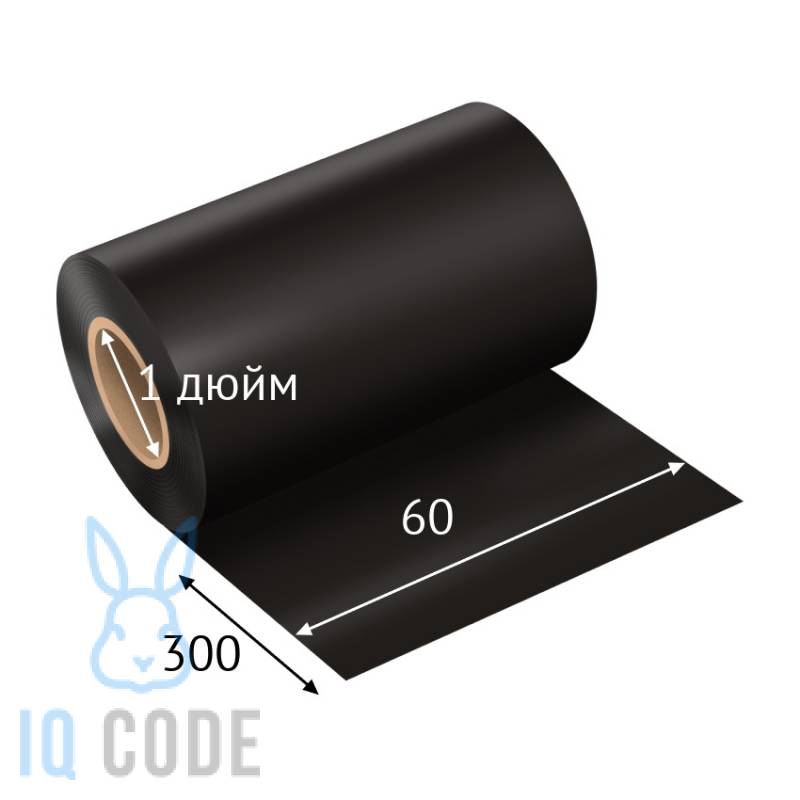 Риббон (красящая лента) Resin Wash 60 мм х 300 м Out Черный, втулка 1 дюйм IQ code