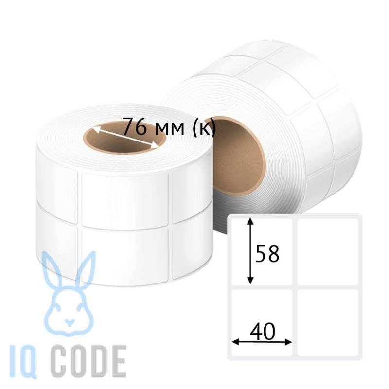 Термотрансферная этикетка 40х58 (рядов 2 по 1 500 шт) Полуглянец в рулоне, втулка 76 мм (к) IQ code