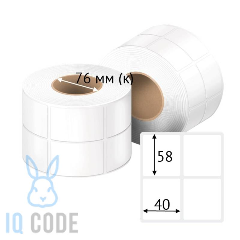 Термотрансферная этикетка 40х58 (рядов 2 по 5 000 шт) Полуглянец в рулоне, втулка 76 мм (к) IQ code