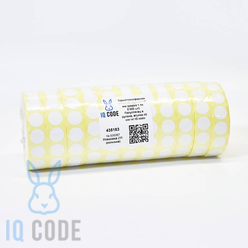 Термотрансферная этикетка круглая 15 мм (рядов 1 по 2 000 шт) Полуглянец в рулоне, втулка 40 мм (к) IQ code