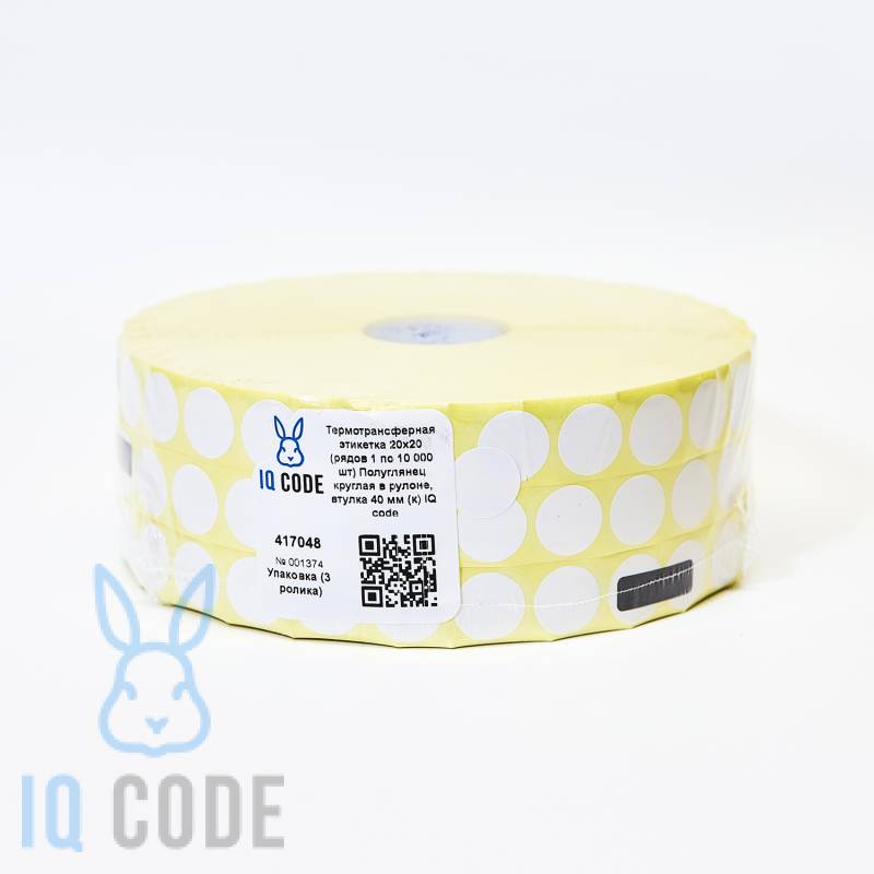 Термотрансферная этикетка 20х20 полуглянцевая, втулка 40 мм (к) (рядов 1 по 10000 шт) круглая IQ code
